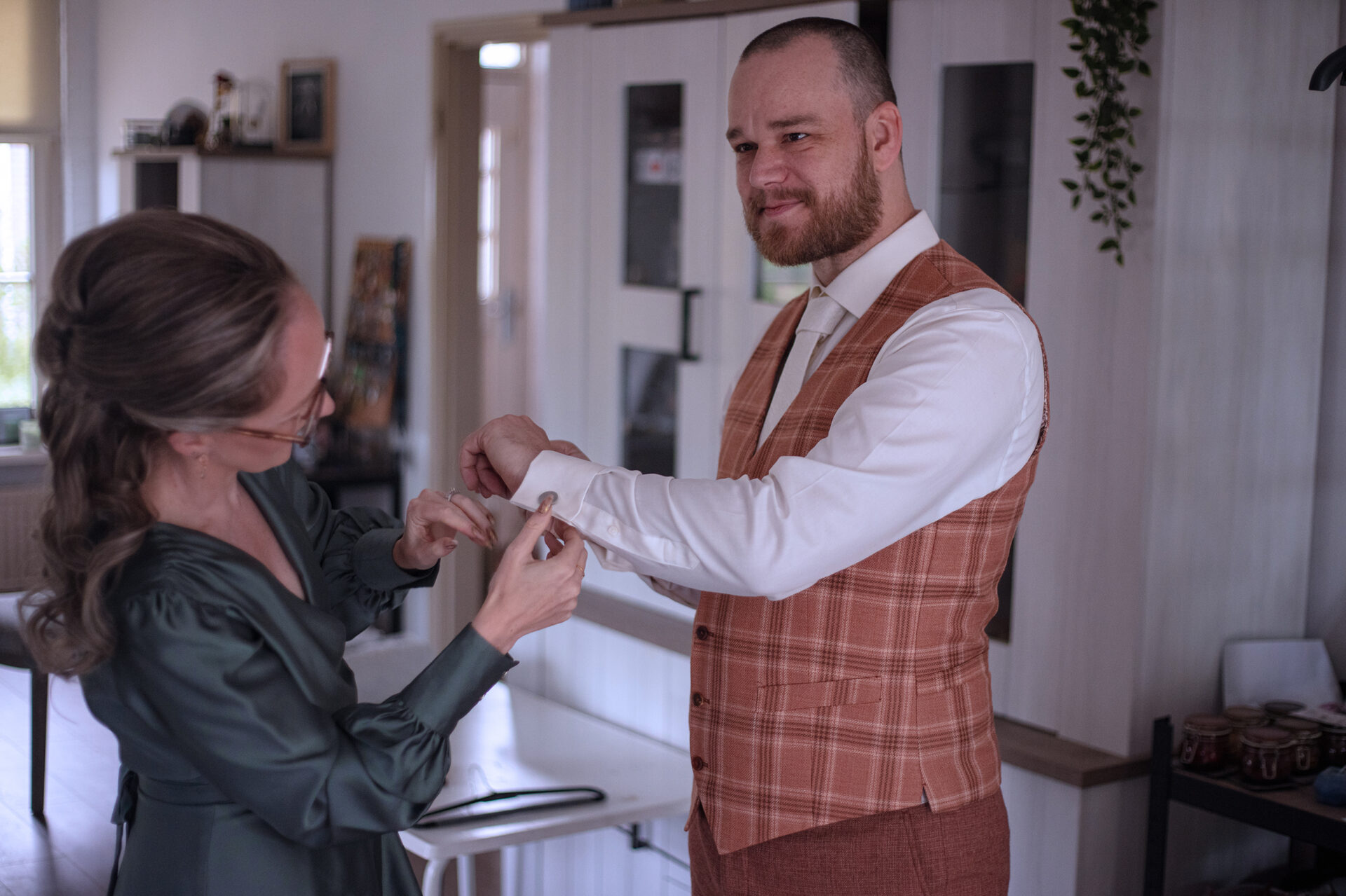 Twee verhalen die parallel lopen, tot ze elkaar ontmoeten. Tijdens de ceremonie en de borrel bewegen we ons onopvallend tussen de gasten, elk vanuit een eigen hoek. Cinzia begeleidt jullie ontspannen door de fotoshoot en coacht bij de portretten met familie en vrienden, terwijl Mark de foto’s maakt en de spontane momenten vangt.