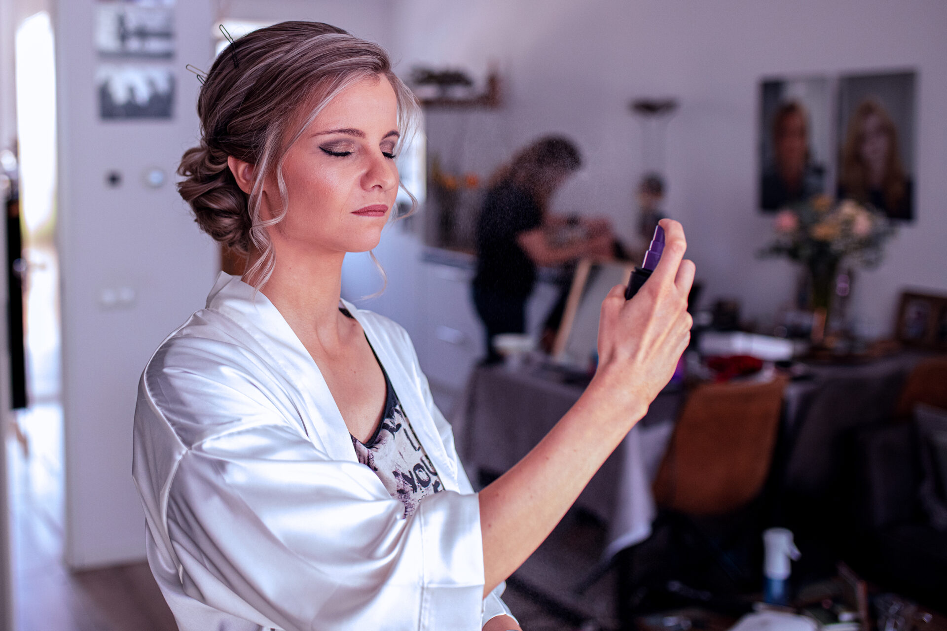 We zijn altijd met z’n tweeën. In de ochtend splitsen we ons op: de één bij de bruid, de ander bij de bruidegom.